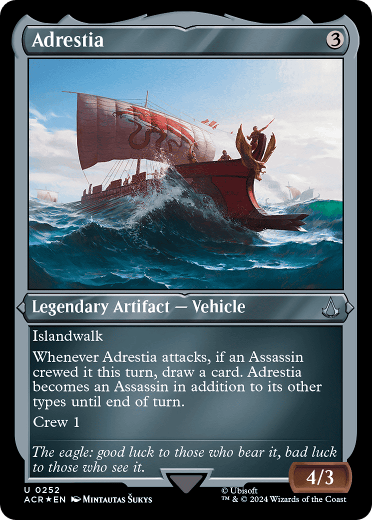 Whenever Adrestia attacks, if an Assassin crewed it this turn, draw a card. Adrestia becomes an Assassin in addition to its other types until end of turn.