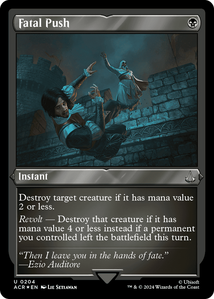 Revolt – Destroy that creature if it has mana value 4 or less instead if a permanent left the battlefield under your control this turn.