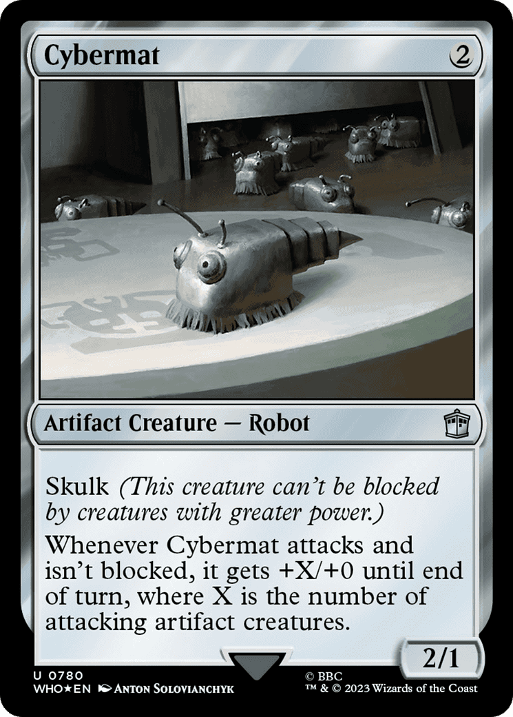 Whenever this creature attacks and isn’t blocked, it gets +X/+0 until end of turn, where X is the number of attacking artifact creatures.