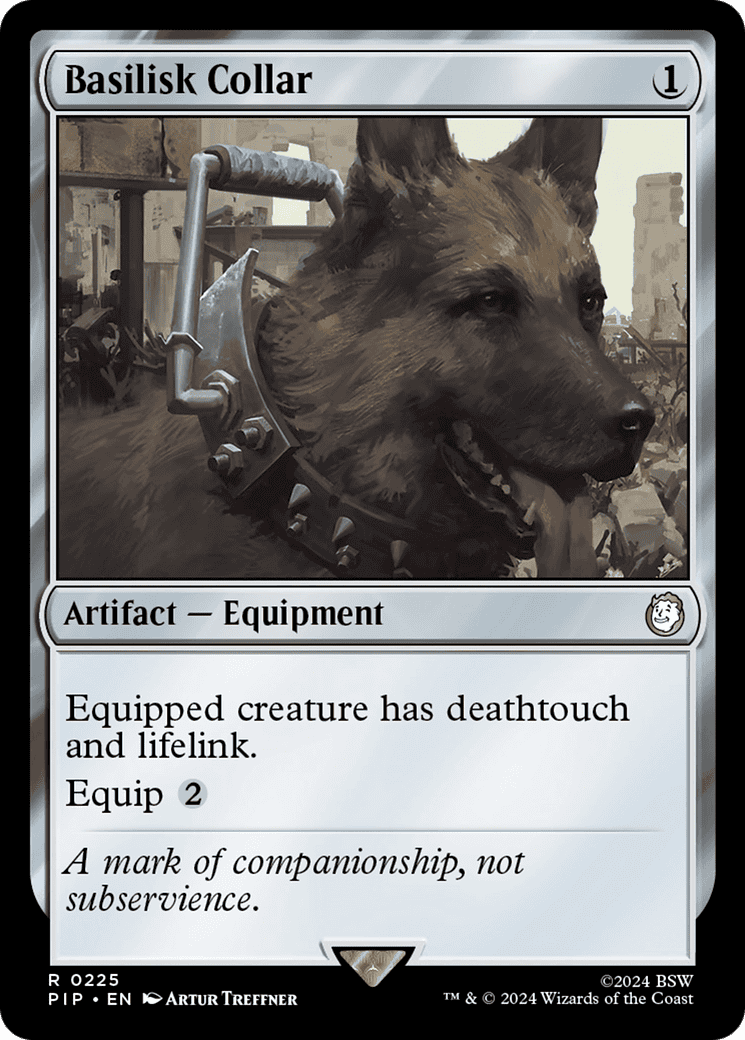 Equipped creature has deathtouch and lifelink. (Any amount of damage it deals to a creature is enough to destroy it. Damage dealt by this creature also causes you to gain that much life.)