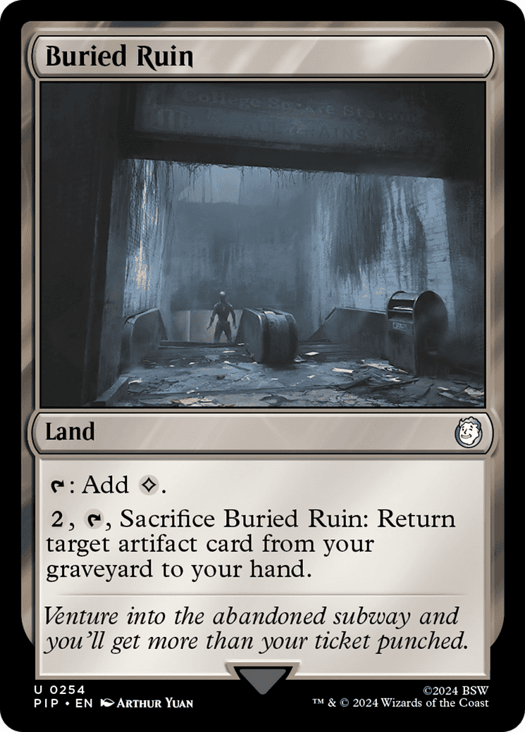 {2}, {T}, Sacrifice this land: Return target artifact card from your graveyard to your hand.