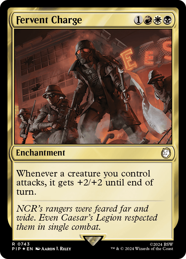 Whenever a creature you control attacks, it gets +2/+2 until end of turn.