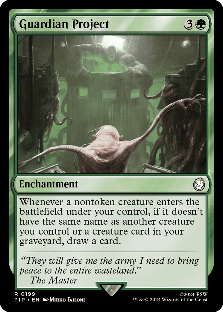 Whenever a nontoken creature you control enters, if it doesn’t have the same name as another creature you control or a creature card in your graveyard, draw a card.