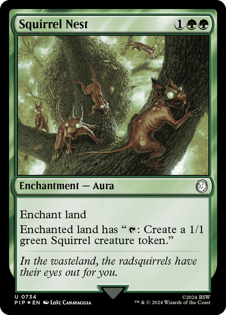 Enchanted land has “{T}: Create a 1/1 green Squirrel creature token.”
