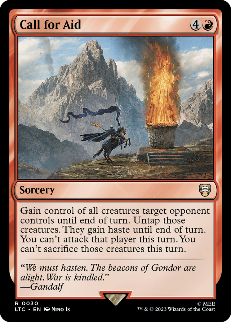 Gain control of all creatures target opponent controls until end of turn. Untap those creatures. They gain haste until end of turn. You can’t attack that player this turn. You can’t sacrifice those creatures this turn.