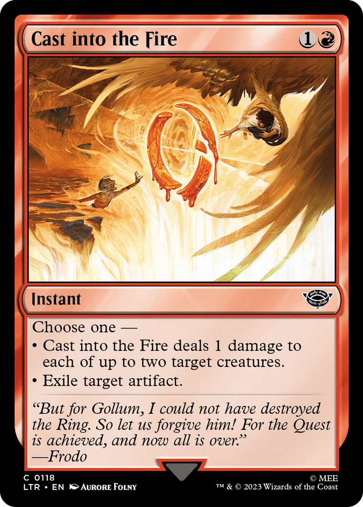 – Cast into the Fire deals 1 damage to each of up to two target creatures.