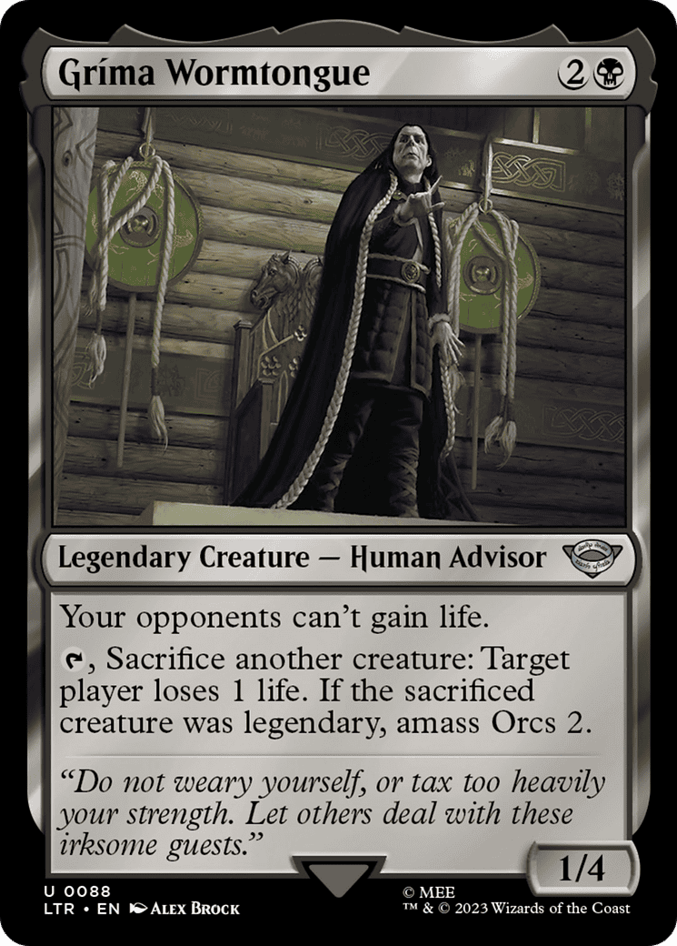 {T}, Sacrifice another creature: Target player loses 1 life. If the sacrificed creature was legendary, amass Orcs 2.