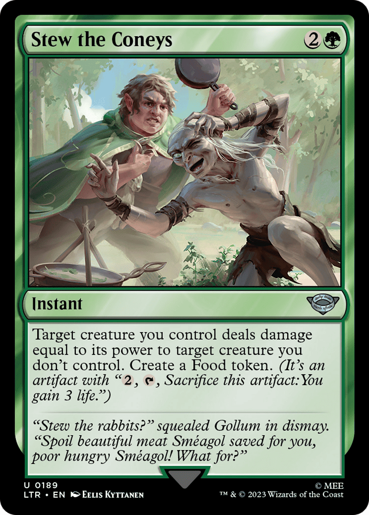 “Stew the rabbits?” squealed Gollum in dismay. “Spoil beautiful meat Sméagol saved saved for you, poor hungry Sméagol! What for?”