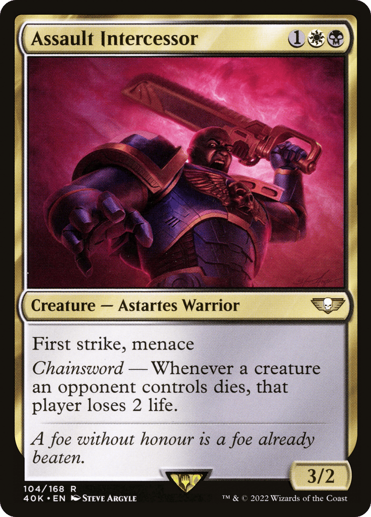 Chainsword – Whenever a creature an opponent controls dies, that player loses 2 life.