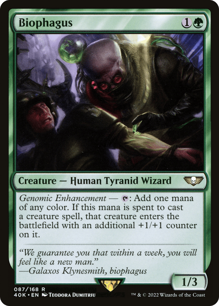 Genomic Enhancement – {T}: Add one mana of any color. If this mana is spent to cast a creature spell, that creature enters with an additional +1/+1 counter on it.