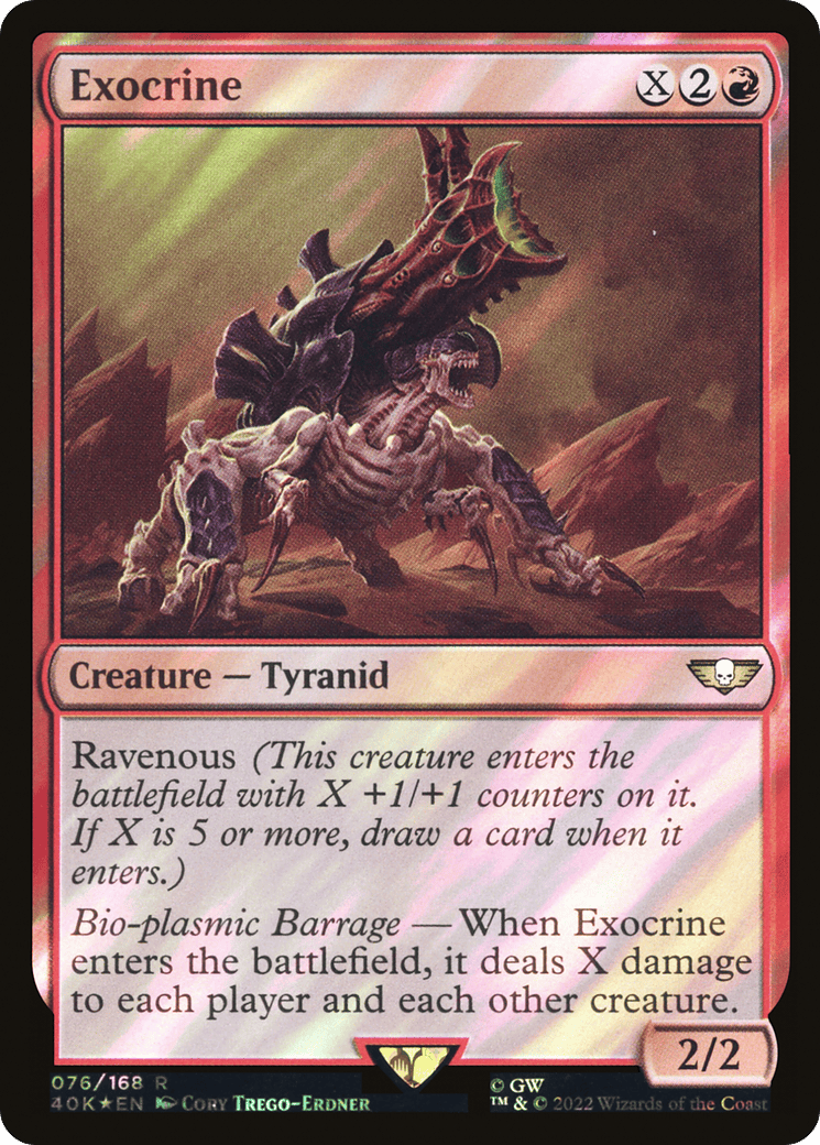 Bio-plasmic Barrage – When this creature enters, it deals X damage to each player and each other creature.