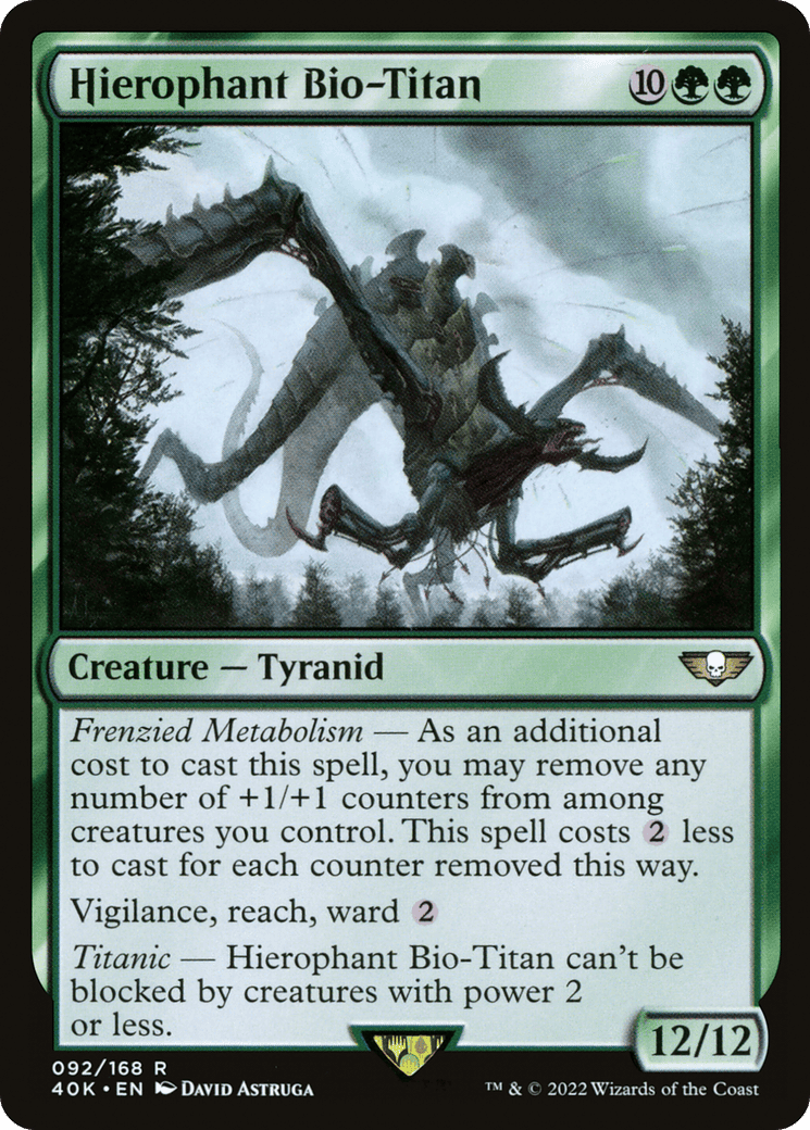 Frenzied Metabolism – As an additional cost to cast this spell, you may remove any number of +1/+1 counters from among creatures you control. This spell costs {2} less to cast for each counter removed this way.