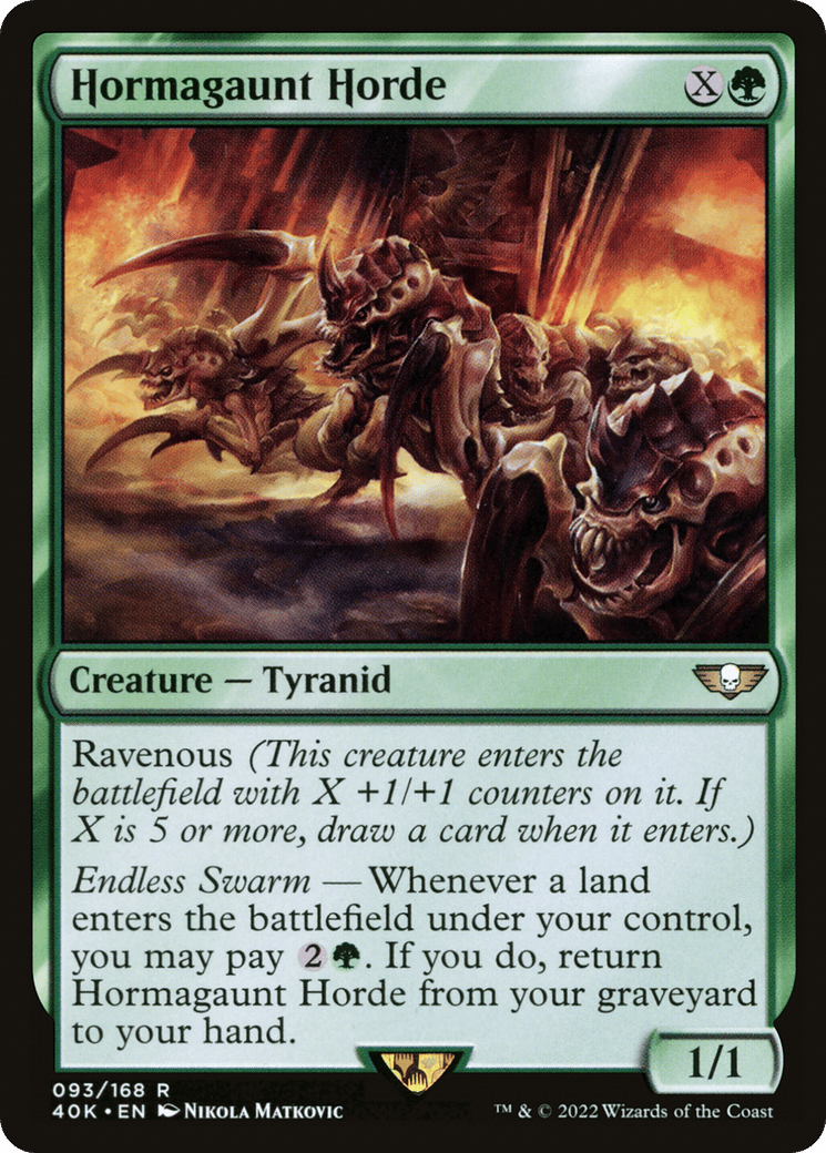 Endless Swarm – Whenever a land you control enters, you may pay {2}{G}. If you do, return this card from your graveyard to your hand.