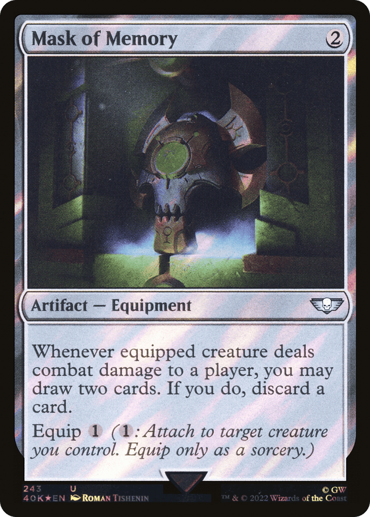 Whenever equipped creature deals combat damage to a player, you may draw two cards. If you do, discard a card.