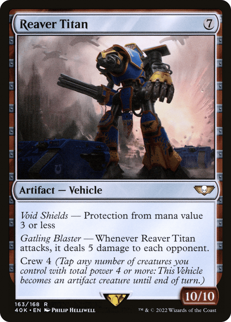 Gatling Blaster – Whenever this Vehicle attacks, it deals 5 damage to each opponent.