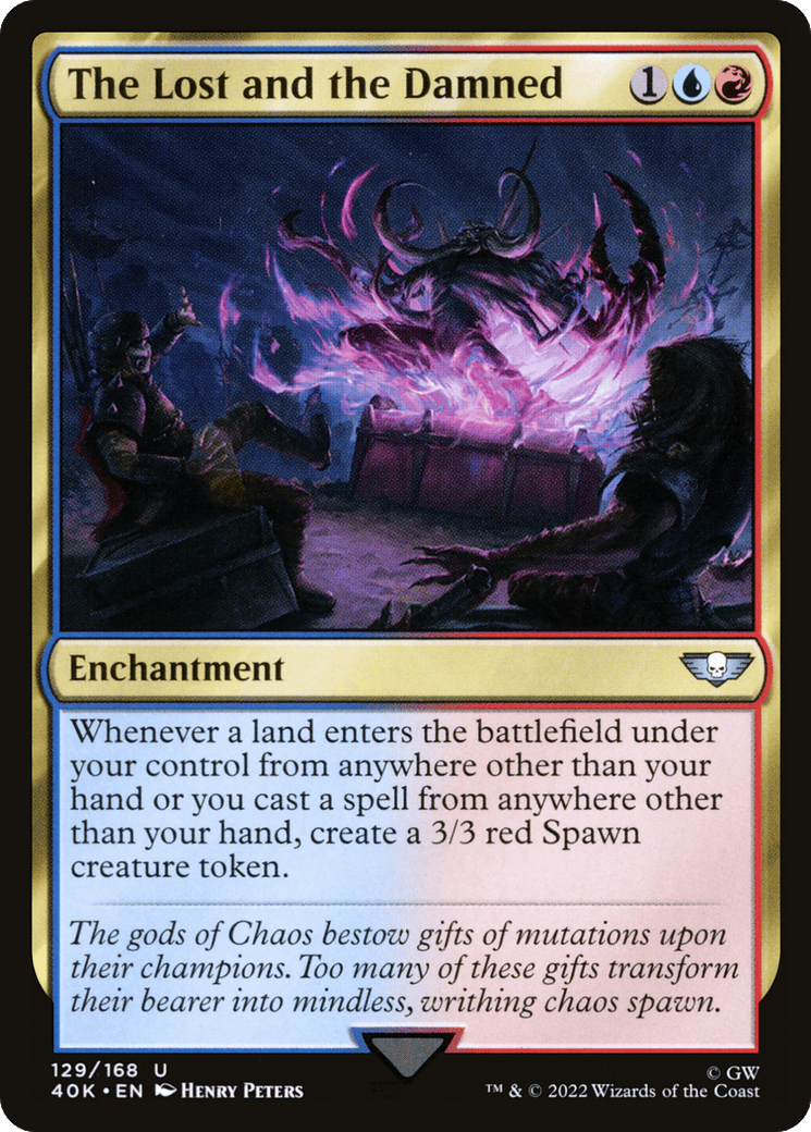 Whenever a land you control enters from anywhere other than your hand or you cast a spell from anywhere other than your hand, create a 3/3 red Spawn creature token.