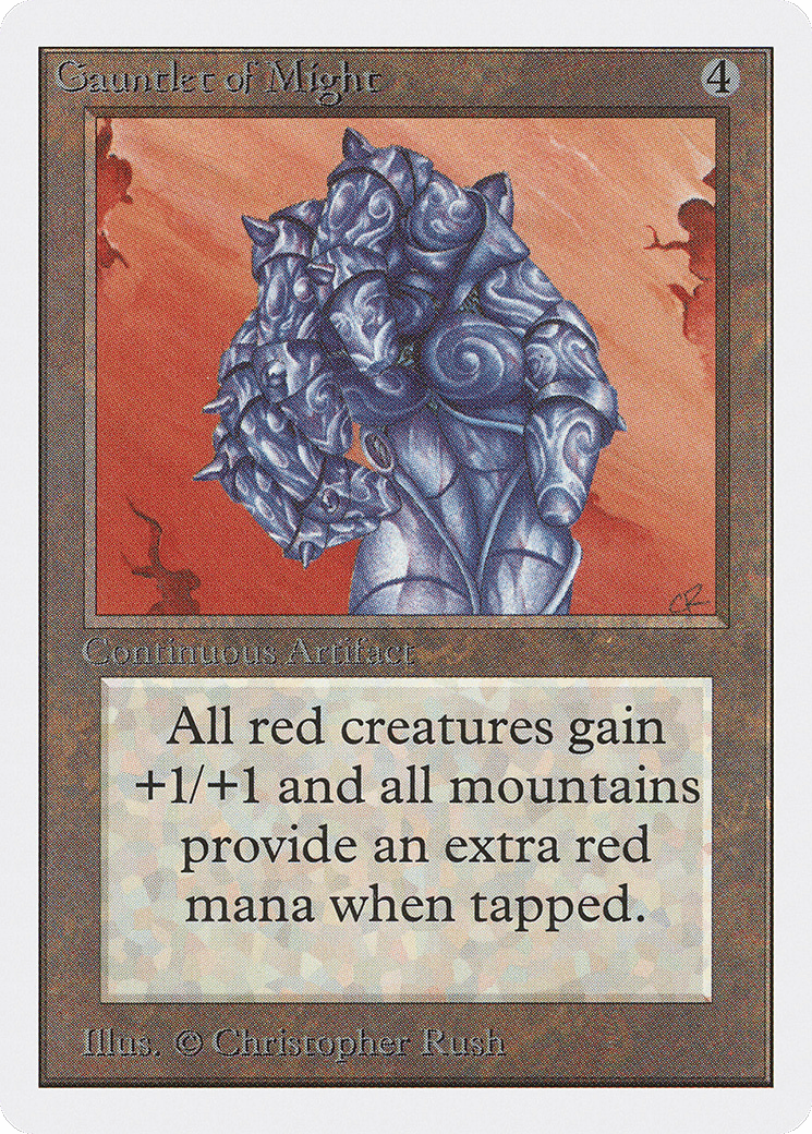 Red creatures get +1/+1. Whenever a Mountain is tapped for mana, its controller adds an additional {R}.