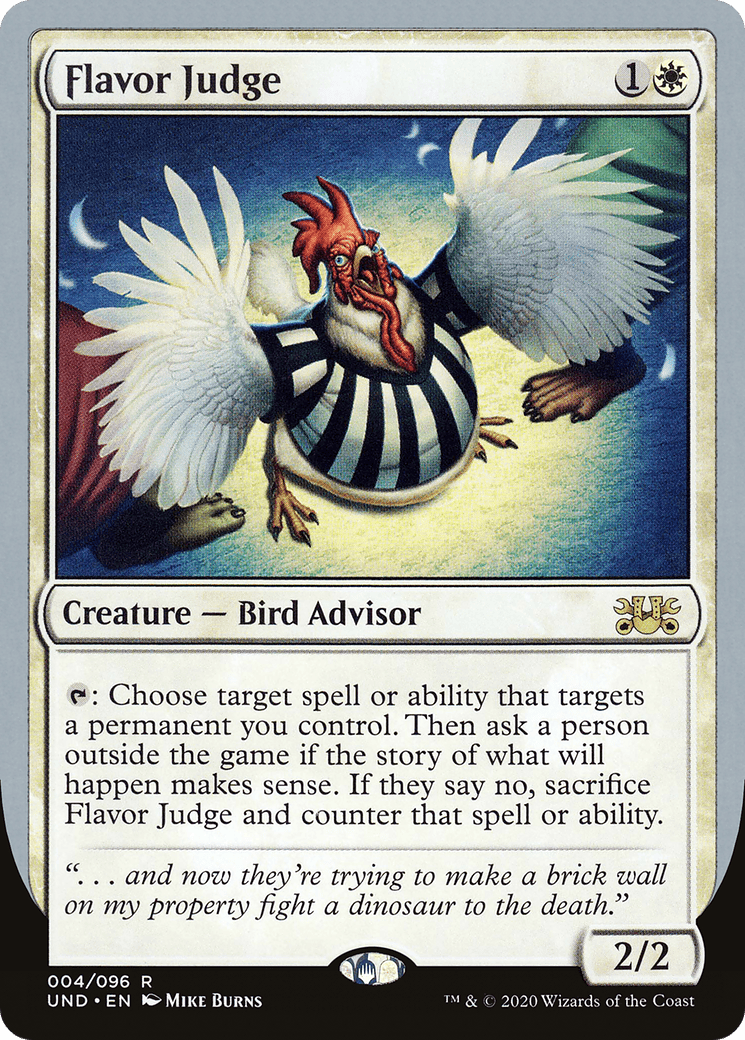 {T}: Choose target spell or ability that targets a permanent you control. Then ask a person outside the game if the story of what will happen makes sense. If they say no, sacrifice this creature and counter that spell or ability.