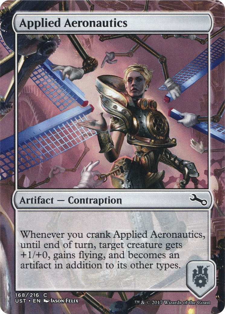 Whenever you crank this Contraption, until end of turn, target creature gets +1/+0, gains flying, and becomes an artifact in addition to its other types.