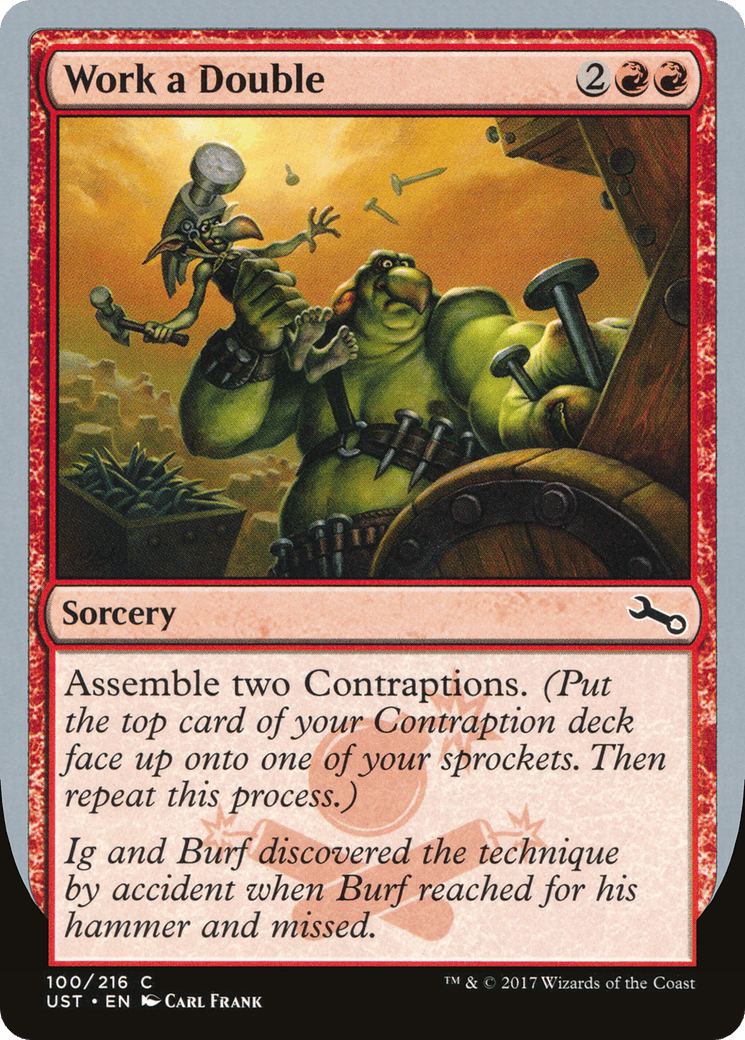 Assemble two Contraptions. (Put the top card of your Contraption deck face up onto one of your sprockets. Then repeat this process.)