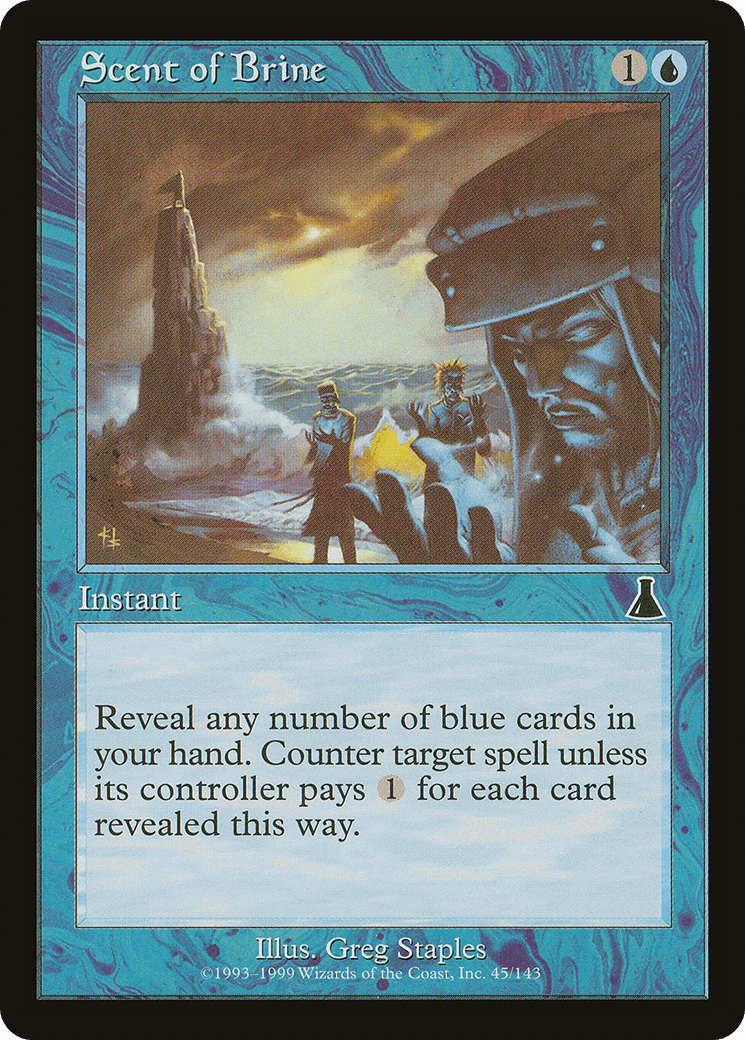 Reveal any number of blue cards in your hand. Counter target spell unless its controller pays {1} for each card revealed this way.