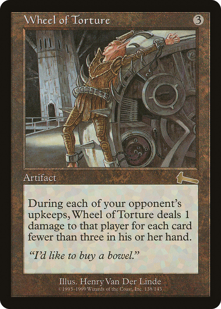At the beginning of each opponent’s upkeep, this artifact deals X damage to that player, where X is 3 minus the number of cards in their hand.