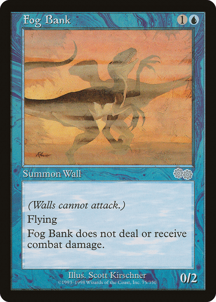 Defender (This creature can’t attack.) Flying Prevent all combat damage that would be dealt to and dealt by this creature.