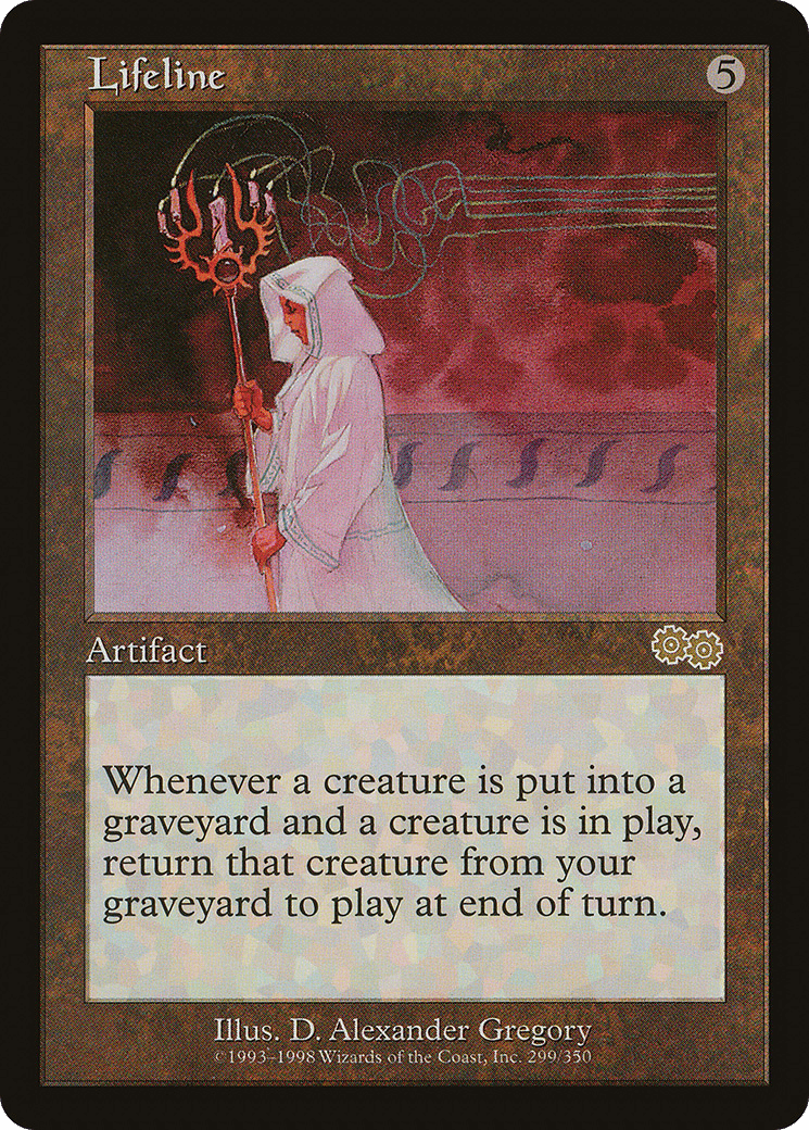 Whenever a creature dies, if another creature is on the battlefield, return the first card to the battlefield under its owner’s control at the beginning of the next end step.
