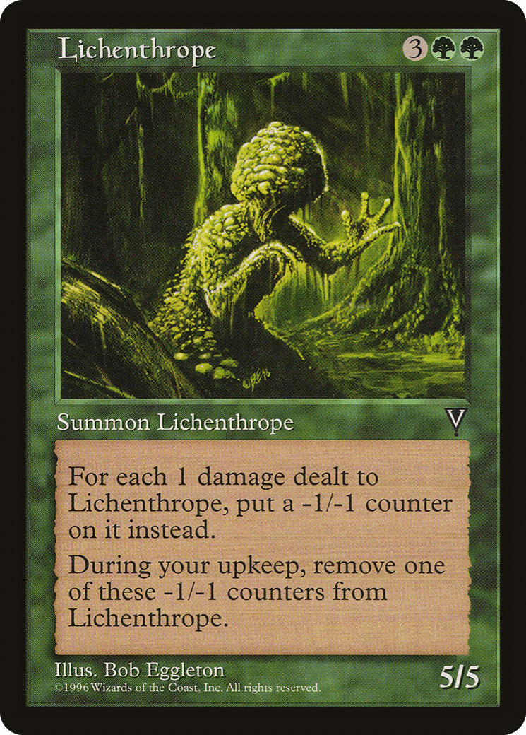 If damage would be dealt to this creature, put that many -1/-1 counters on it instead. At the beginning of your upkeep, remove a -1/-1 counter from this creature.