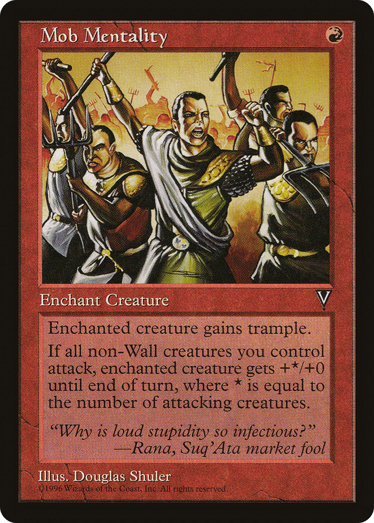 Whenever all non-Wall creatures you control attack, enchanted creature gets +X/+0 until end of turn, where X is the number of attacking creatures.