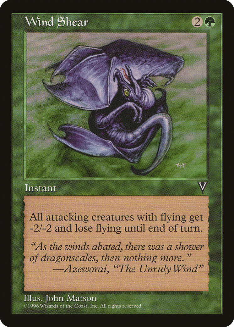 Attacking creatures with flying get -2/-2 and lose flying until end of turn.