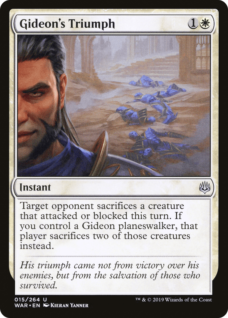 Target opponent sacrifices a creature of their choice that attacked or blocked this turn. If you control a Gideon planeswalker, that player sacrifices two of those creatures of their choice instead.