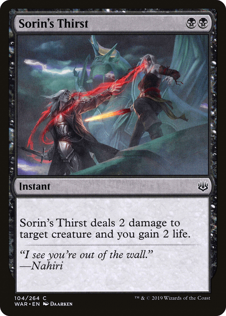 Sorin’s Thirst deals 2 damage to target creature and you gain 2 life.