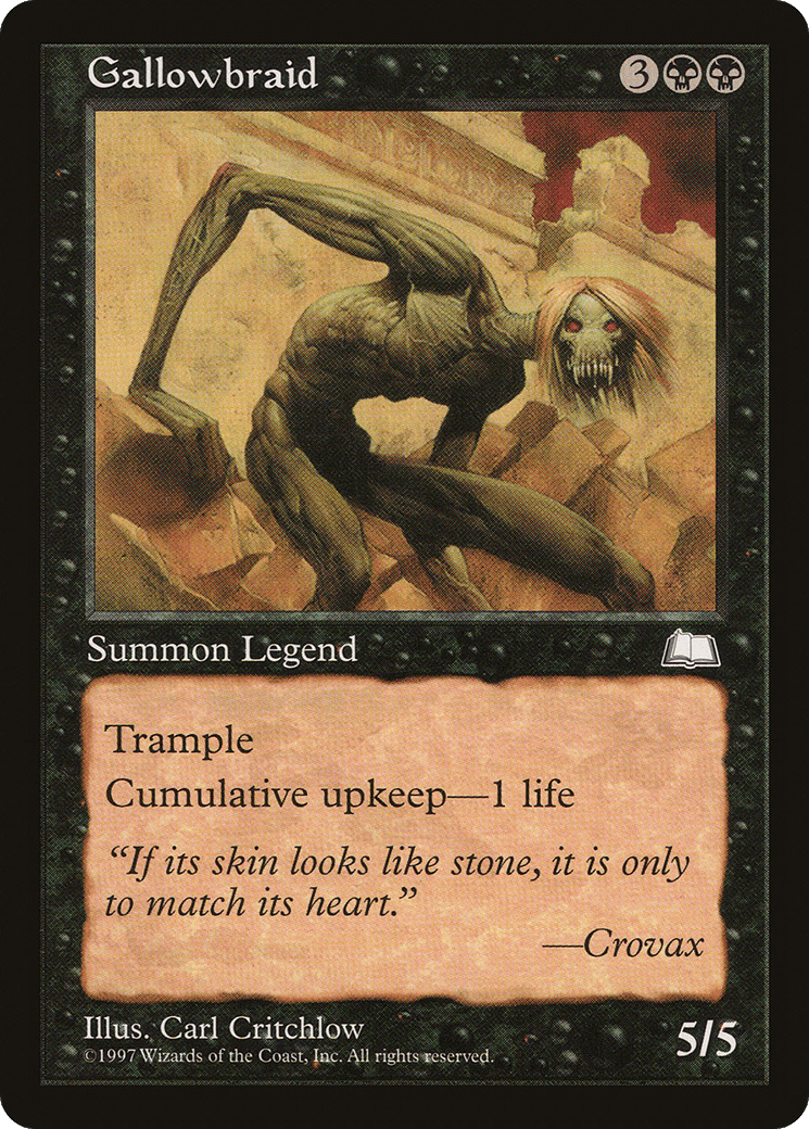 Cumulative upkeep-Pay 1 life. (At the beginning of your upkeep, put an age counter on this permanent, then sacrifice it unless you pay its upkeep cost for each age counter on it.)