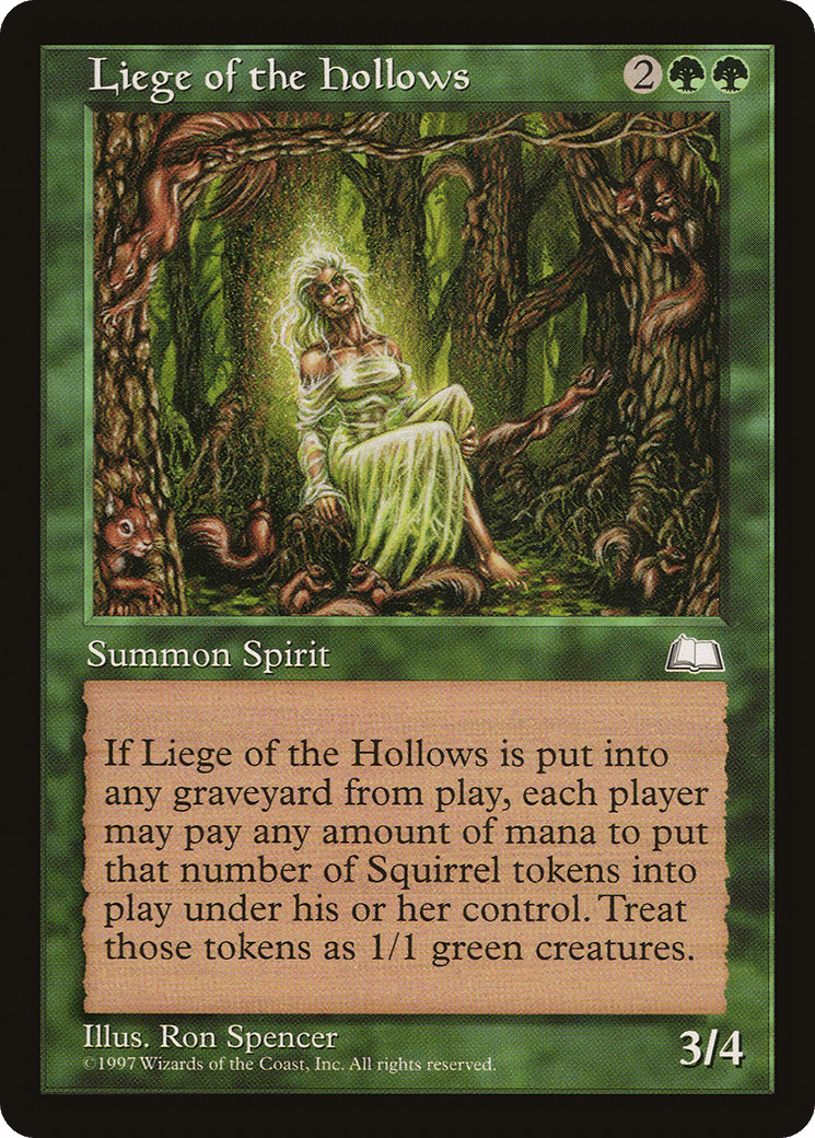 When this creature dies, each player may pay any amount of mana. Then each player creates a number of 1/1 green Squirrel creature tokens equal to the amount of mana they paid this way.