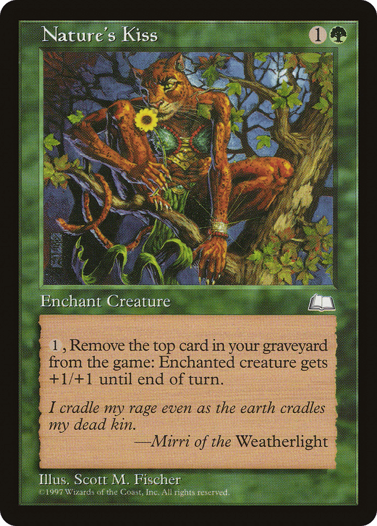 {1}, Exile the top card of your graveyard: Enchanted creature gets +1/+1 until end of turn.