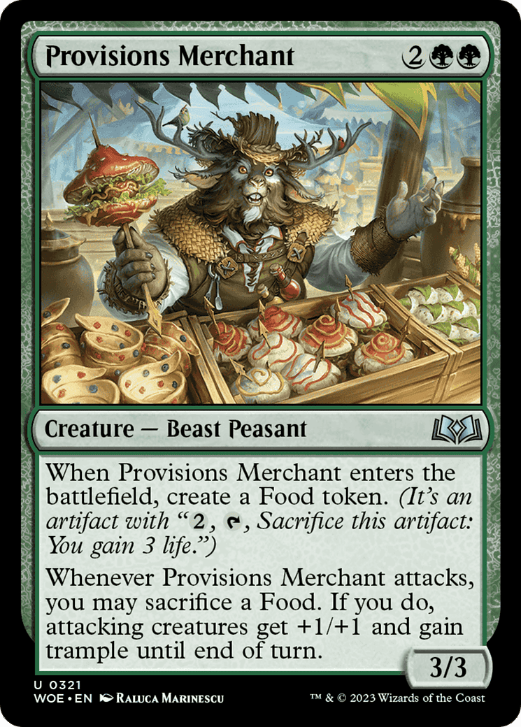 When this creature enters, create a Food token. (It’s an artifact with “{2}, {T}, Sacrifice this token: You gain 3 life.”)