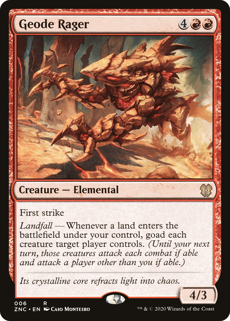 Landfall – Whenever a land you control enters, goad each creature target player controls. (Until your next turn, those creatures attack each combat if able and attack a player other than you if able.)