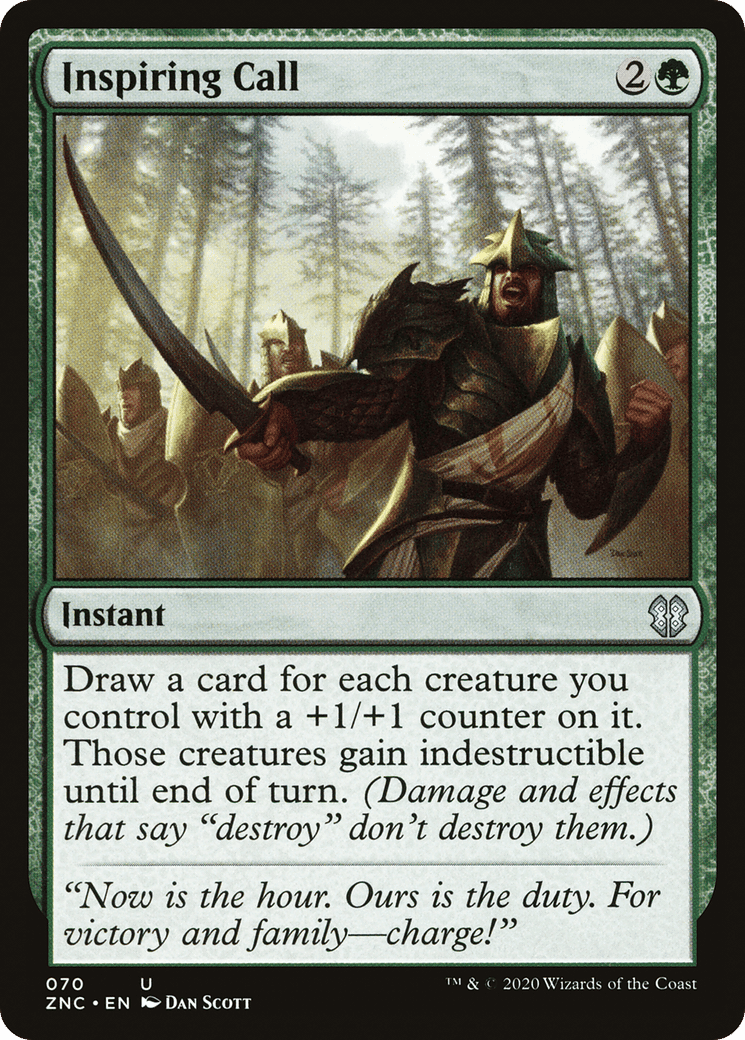 Draw a card for each creature you control with a +1/+1 counter on it. Those creatures gain indestructible until end of turn. (Damage and effects that say “destroy” don’t destroy them.)