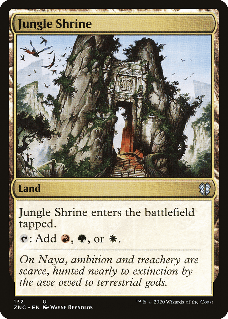 This land enters tapped. {T}: Add {R}, {G}, or {W}.