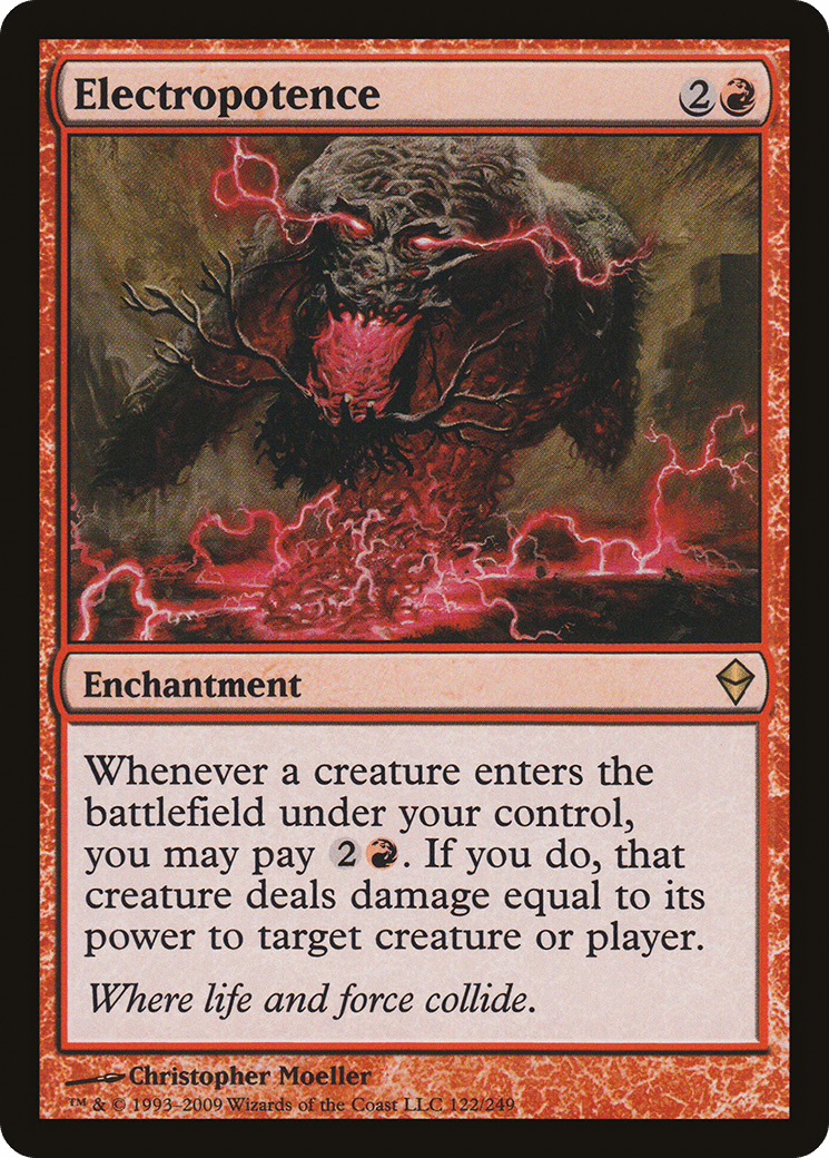 Whenever a creature you control enters, you may pay {2}{R}. If you do, that creature deals damage equal to its power to any target.