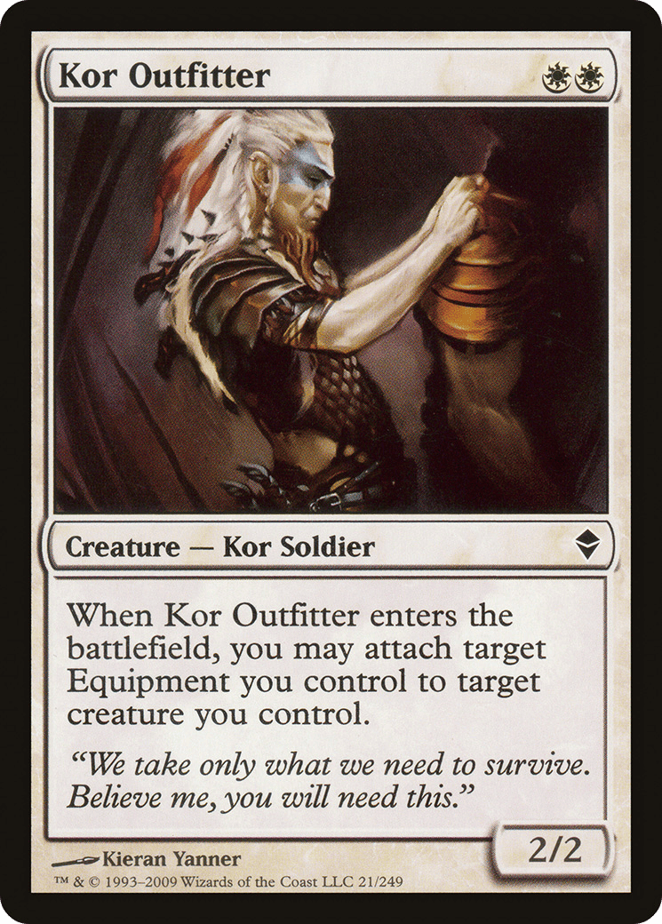 When this creature enters, you may attach target Equipment you control to target creature you control.